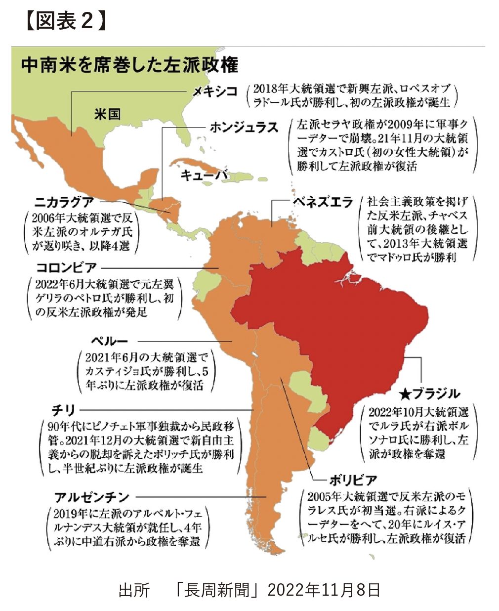 翌22年8月には、右派親米政権が続いてきたコロンビアで、ゲリラ出身のグスタボ・ペトロ大統領が就任して史上初の左派政権が誕生、さらにその僅か2か月後にはブラジルの大統領選挙で左派のルラ氏が勝利し、バイデン米政権に衝撃を与えた。