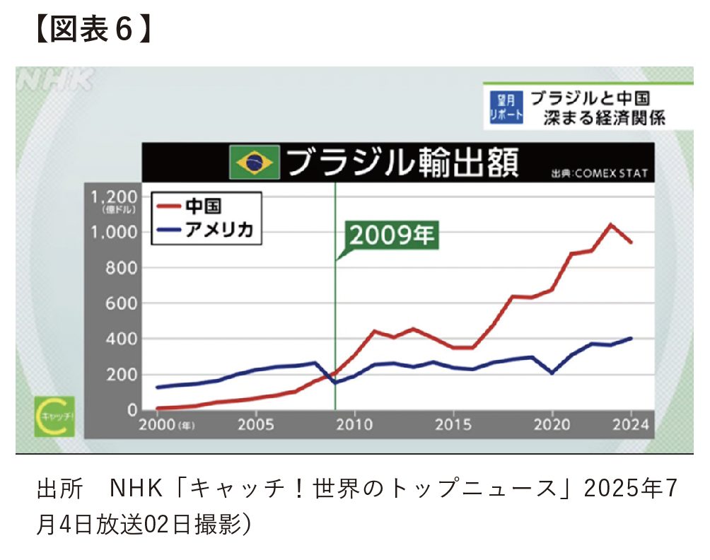 ルラ大統領は25年5月中国を公式訪問し、習近平国家主席と会談した。トランプ政権の関税政策を念頭に、保護主義への懸念にも言及した。両国は貿易や通貨スワップなど各方面の連携強化に合意、ブラジルは中国から総額270億㌦(約3兆8000億円)の投資を引き出すことに成功した。またロシアとウクライナの戦争の早期集結に向けた対話への協力を両国が進めることでも両首脳は合意した。