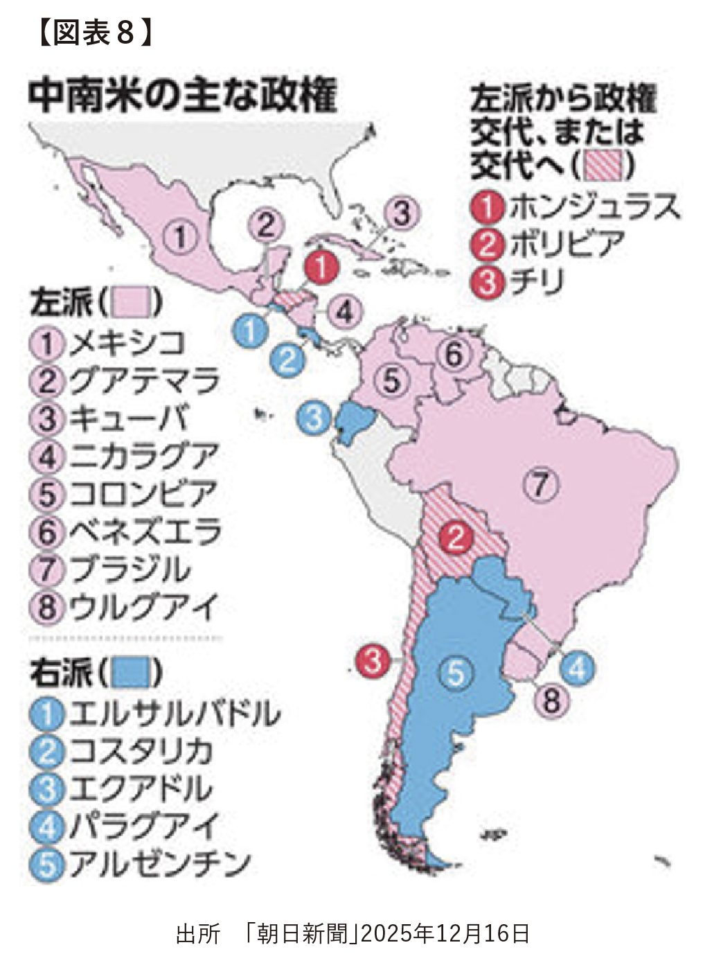 そのほか同年10月のボリビア大統領選では、中道のパス新大統領の勝利で20年続いた反米左派政権が終結。さらに12月にはホンジュラスの政権交代に加え、任期満了に伴うチリの大統領選の決選投票で右派野党共和党のホセアントニオ・カスト元下院議員が与党の左派候補に大差で勝利し、親米路線に政策を転換する見通しだ。