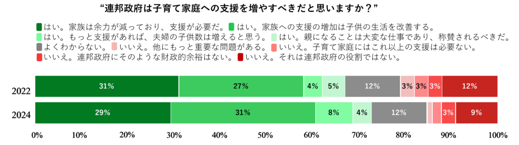 Among younger conservatives, particularly Millennials and Generation Z, there is also a growing openness to family support policies rather than strict adherence to a traditional “small government” stance. According to a survey conducted by the conservative think tank American Compass, 64 percent of self-identified “conservative” or “very conservative” parents responded that “the federal government should do more to support families with children.” This figure represents an increase of 13 percentage points over the past three years.